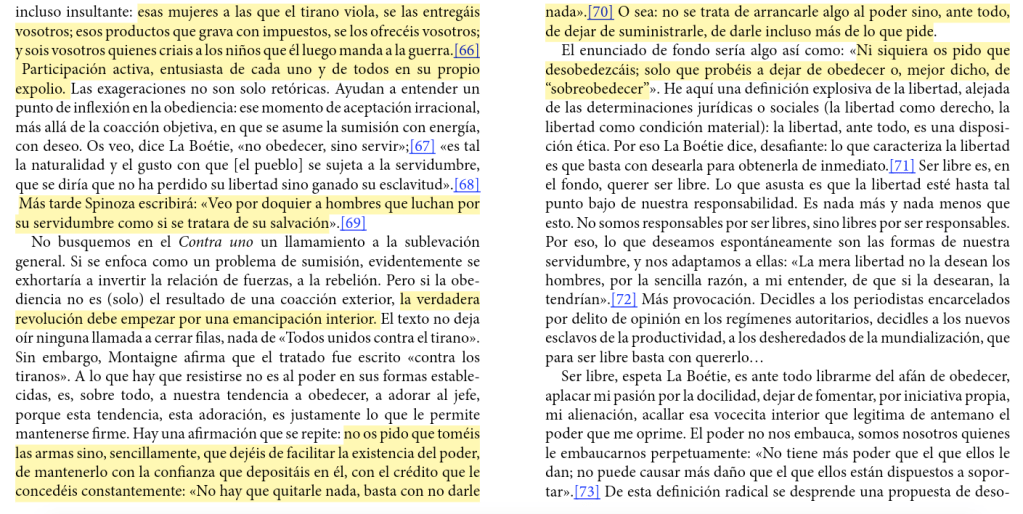 Del tercer capítulo: Sobreobediencia. Analiza el texto de La Boétie, Contra Uno.